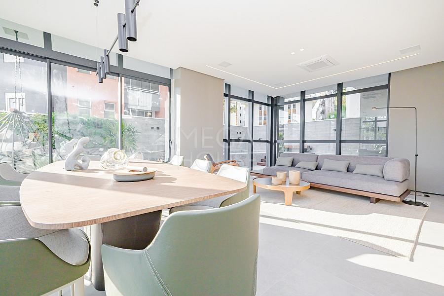 Este apartamento duplex possui 195 m² de área privativa e conta com 3 suítes plenas, sendo a máster com ampla varanda, lavabo, ampla sala de estar e jantar, cozinha com preparação para ilha, varanda gourmet espaçosa e demais diferenciais como: piso aquecido em todo o apartamento, pé direito alto, ar condicionado dutados por grelhas, preparação para banheira de imersão no banheiro da suíte e preparação para automação de todo o apartamento.