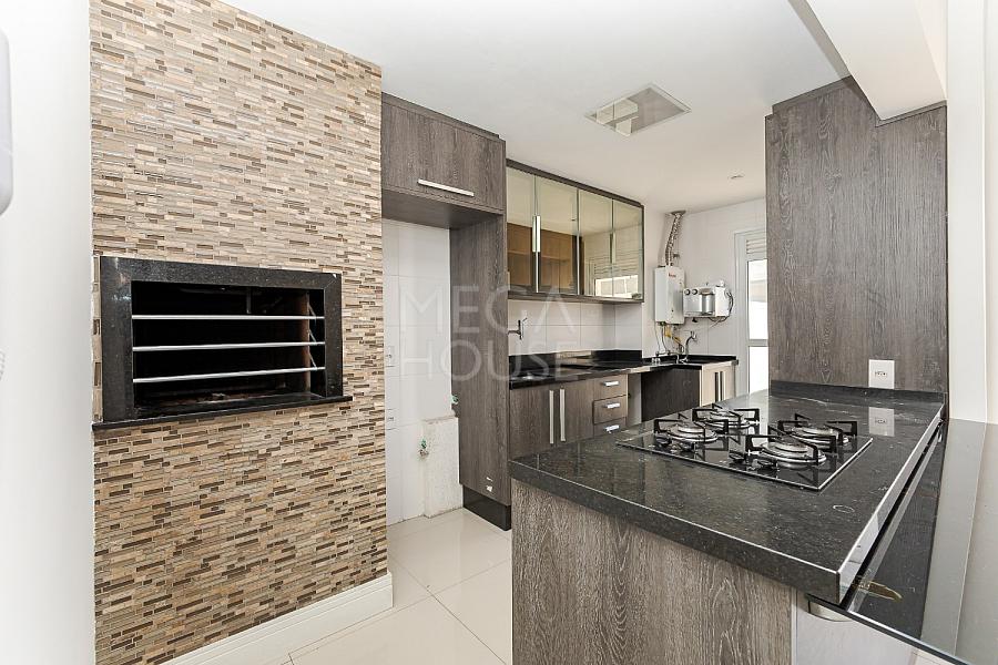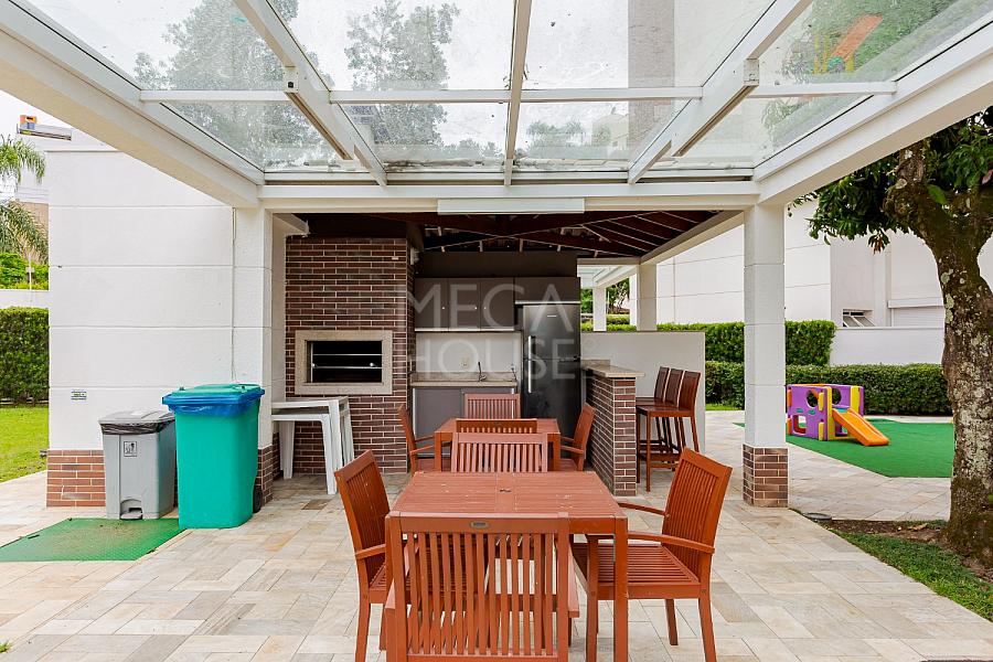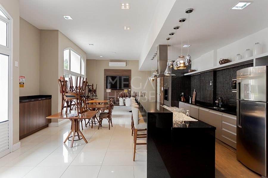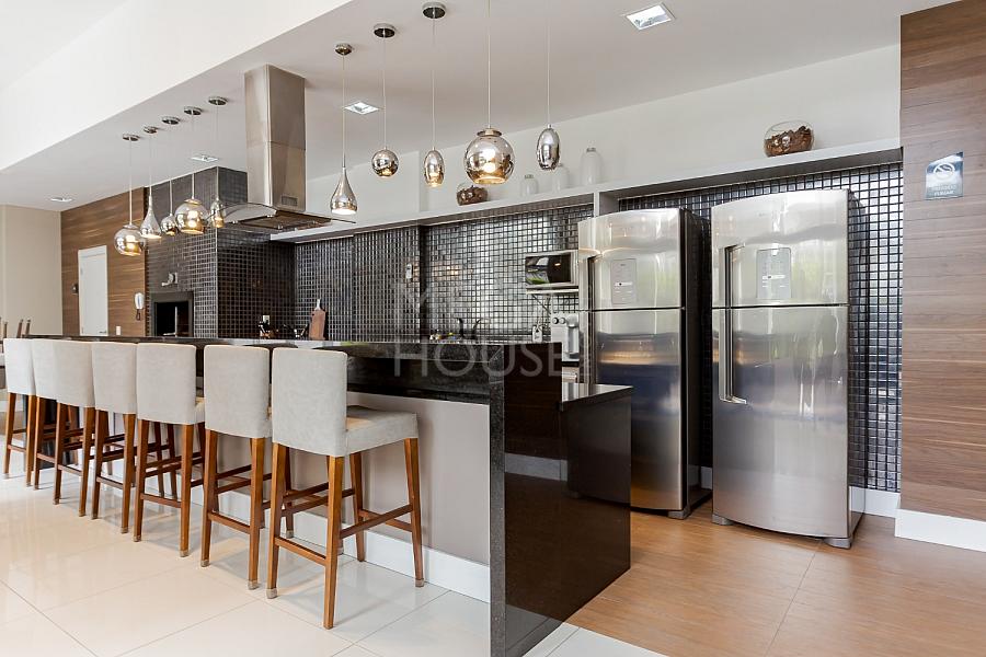 Cozinha americana integrada com churrasqueira a carvão e um amplo living para você viver muito bem com sua família e receber com maestria seus convidados.