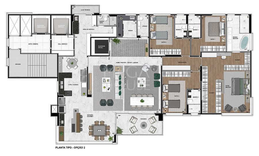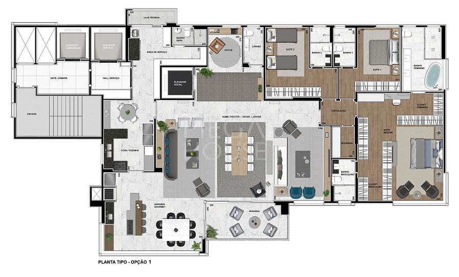 Com plantas generosas de 320 m² privativos, este é o epítome da elegância e sofisticação. Imagine-se vivendo em um espaço que combina conforto, requinte e funcionalidade, com 3 ou 4 suítes meticulosamente projetadas para o seu conforto, uma ampla varanda para desfrutar de vistas panorâmicas de tirar o fôlego, um espaço gourmet para receber seus amigos e familiares com estilo e um home office para garantir sua produtividade sem abrir mão do conforto.