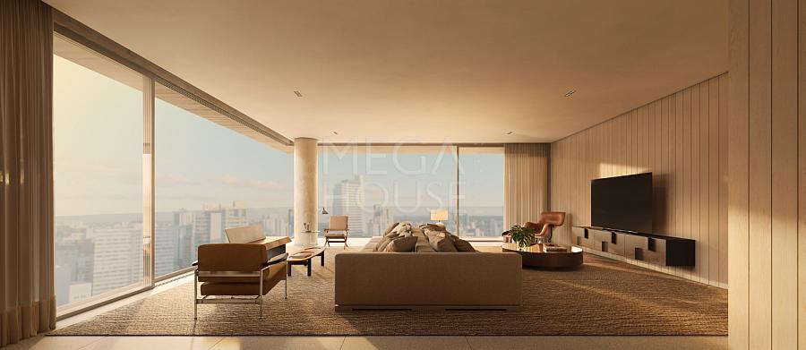 Arquitetura e interiores por Arthur Casas, com brises exclusivos, iluminação natural abundante e materiais nobres.