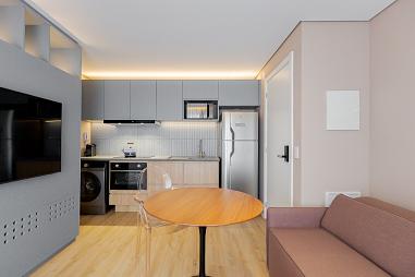 - Sala de estar e jantar integradas, criando um ambiente amplo e funcional