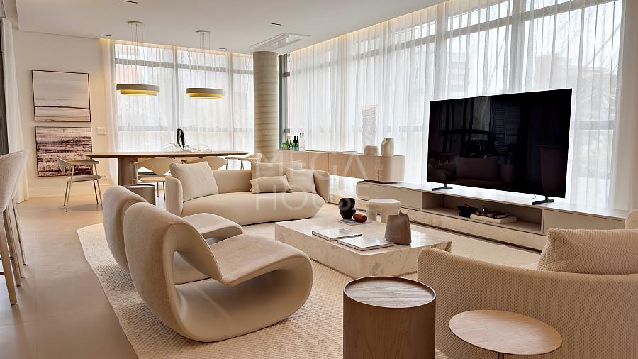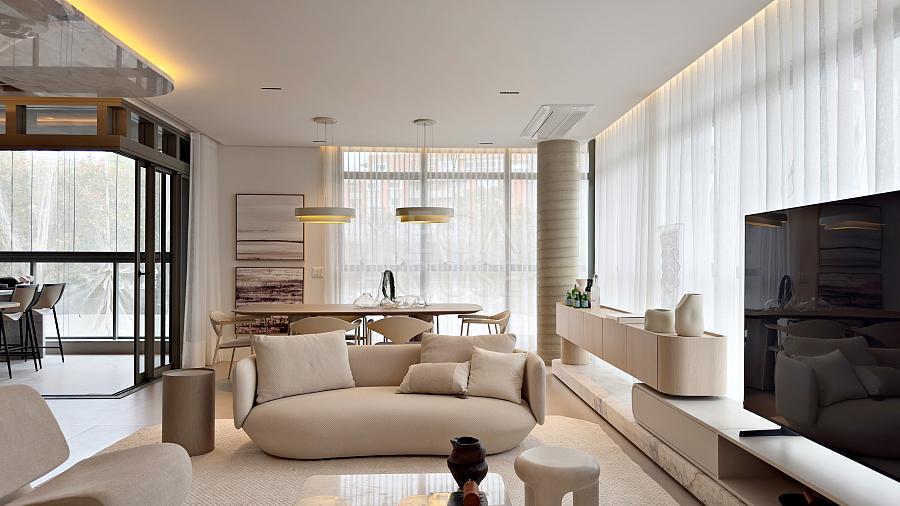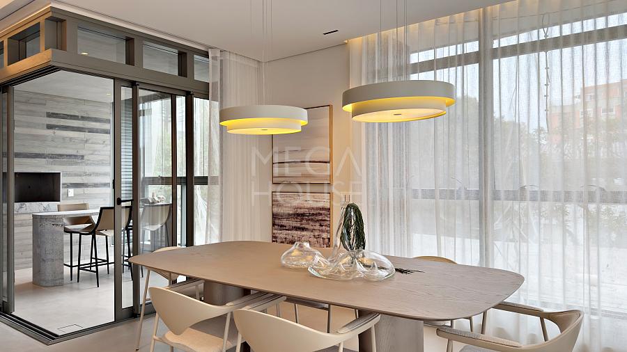 - Sala de estar e jantar integradas, criando um ambiente amplo e funcional