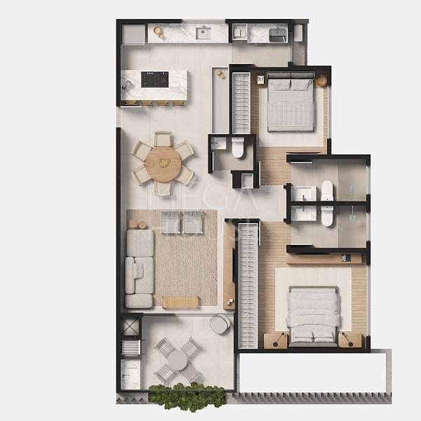 2 dormitórios (2 suítes)