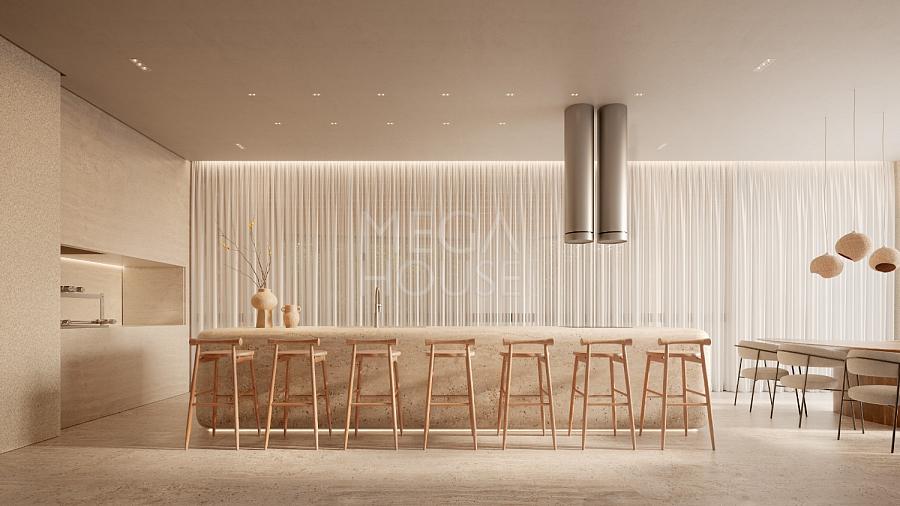 Ao entrar no apartamento, você é recebido por uma ampla sala de estar e jantar, com acabamentos de alto padrão, como pisos porcelanato de grandes dimensões e tetos rebaixados. A cozinha é totalmente integrada, permitindo um visual incrível ao "chef". As janelas são de piso a teto, o que proporciona uma vista incrível por todos os ambientes.